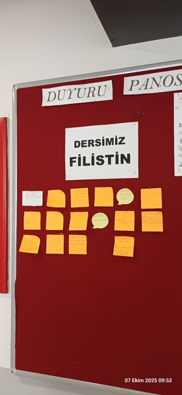 Okulumuzda, Bakanlığımızın belirlediği Filistin farkındalık etkinlikleri kapsamında anlamlı bir program gerçekleştirildi. Öğrencilerimiz, barış ve adalet teması etrafında farklı sınıf düzeylerine uygun etkinliklerle farkındalıklarını ortaya koydular.