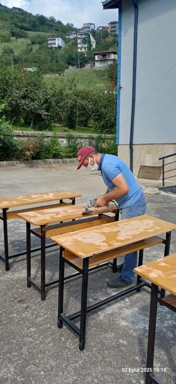 Yeni eğitim öğretim yılına sayılı günler kala okulumuzda öğrencilerimizin daha temiz, düzenli ve ferah bir ortamda ders işlemeleri için çalışmalar tüm hızıyla devam ediyor.