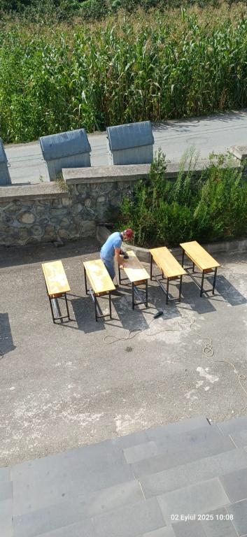 Okul sıraları zımparalanarak yeniden verniklenip cilalanmakta,